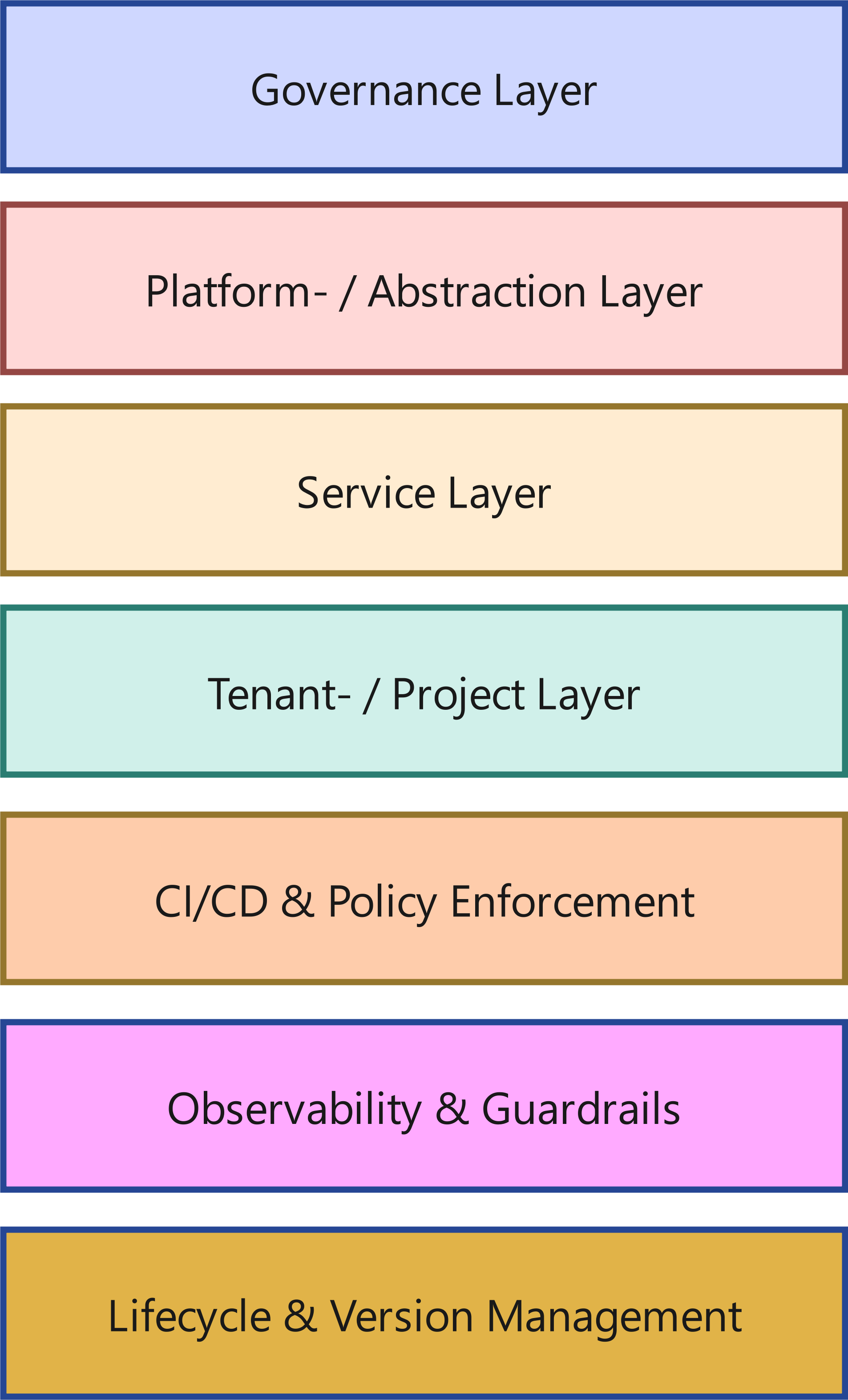This blueprint shows an end-to-end reference flow that works reliably in an enterprise context: from the module change to an auditable rollout across multiple product teams - including governance, testing, propagation, and observability.